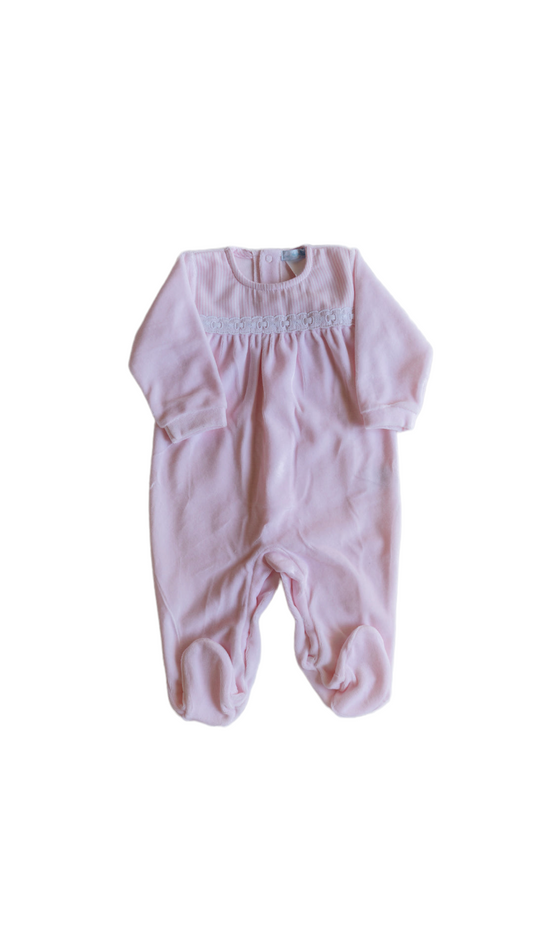 Mameluco con peto bordado en puntilla